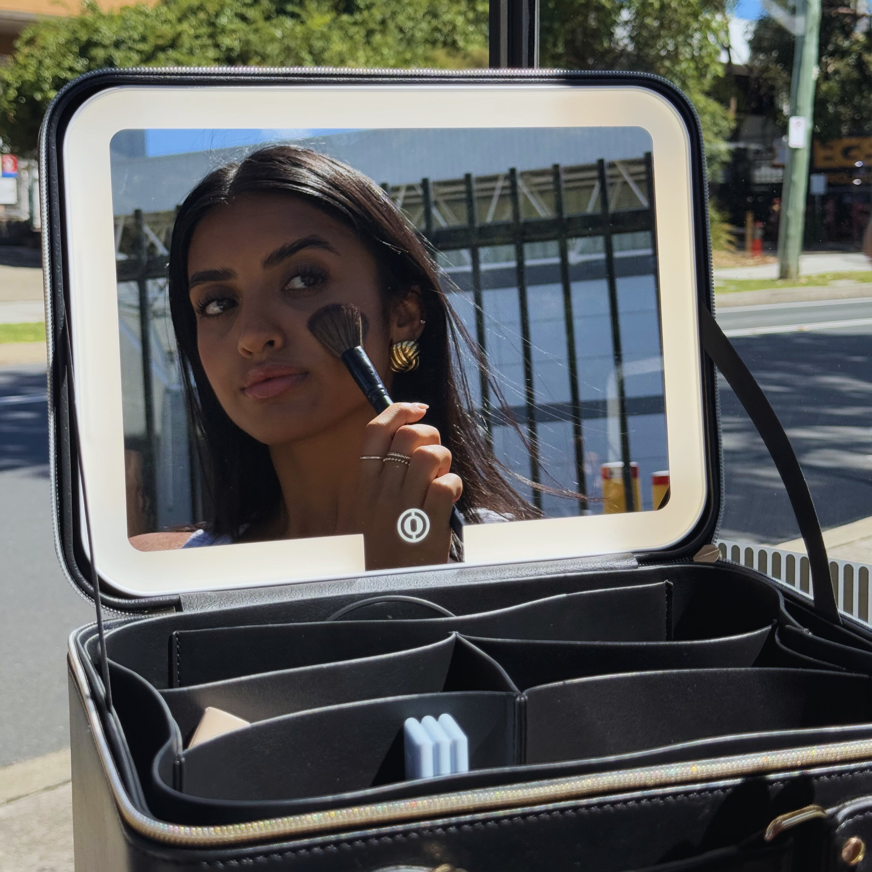 I travel frequently for work, and this case is my new essential. The customisable lighting and magnetic magnification mirror make it easy to touch up anywhere. It’s chic and functional!